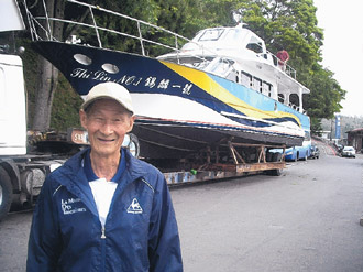 吊車(chē)手臂緩緩抬升,上岸的這艘舊游艇“錫麟號(hào)”來(lái)頭可不小,50年前它可是蔣介石的御用游艇,雖然時(shí)光飛逝、物換星移,“錫麟號(hào)”的名聲依舊風(fēng)光,老船長(zhǎng)陳義山要再造“錫麟號(hào)”的新傳奇。