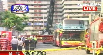 中新網(wǎng)4月24日電 據(jù)臺(tái)灣TVBS報(bào)道,臺(tái)灣信義商圈24日發(fā)生一起嚴(yán)重工安意外,一輛載有25人的廣東旅行團(tuán)游覽車,經(jīng)過工地時(shí)被37層樓高的起重機(jī)吊臂砸到,導(dǎo)致3人輕重傷和3人死亡。臺(tái)北市長郝龍斌到意外現(xiàn)場勘災(zāi),對旅行團(tuán)員表示關(guān)心。