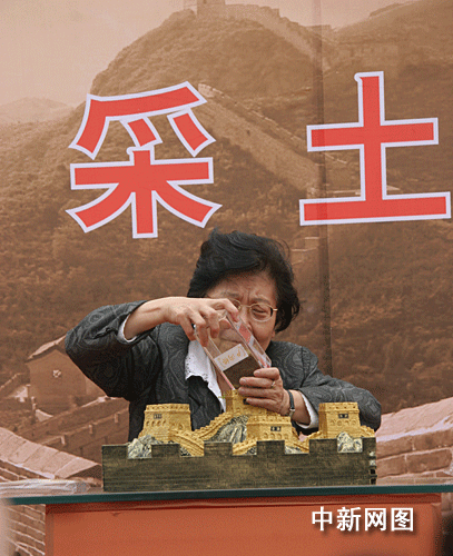 據(jù)了解,兩岸采土活動完成后,國共近百名曾參與抗戰(zhàn)的高級將領的子女將會聚北京。11月9日,北京八達嶺長城將會舉行專門儀式,把兩岸六地之土“合”在一起,共同敬奉填筑于“華夏寶鼎”鼎禁之內(nèi),并永久保存于長城博物館。通過這一系列的“采土”、“合土”、“奉土”儀式,顯示中華文化一脈相承、中華民族永世一統(tǒng)的理念,充分表達對兩岸關系和平發(fā)展、對兩岸同胞和諧共生的由衷期盼和美好愿景。
