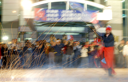 國民黨在“立委”選舉中大勝,支持民眾欣喜若狂,十二日晚間在中央黨部前放煙火慶祝!爸醒肷纭眻D 王飛華 攝
