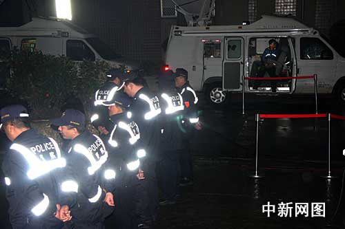 12月29日下午2時(shí),臺北地方法院開始召開羈押庭,就是否收押陳水扁做出裁決。時(shí)間已過去十一個(gè)小時(shí),最終裁決仍未有結(jié)果。圖為臺北地方法院靠近司法警察室的側(cè)門口。警察仍在戒備。(圖文/陳立宇)