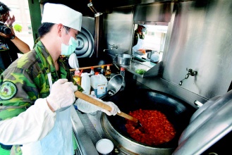 軍方規(guī)劃未來部隊每六個月,選擇一天吃兩餐可加熱野戰(zhàn)餐盒、一份野戰(zhàn)口糧。美軍多年實(shí)戰(zhàn)經(jīng)驗,在野外的戰(zhàn)士若是能吃到熱食,對于士氣有很大的幫助。臺灣過去沒有野戰(zhàn)炊事車,近幾年才開始由聯(lián)勤司令部研發(fā),同時在漢光演習(xí)中進(jìn)行實(shí)地的野戰(zhàn)測試。
