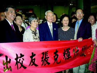 在三弟張有信、四弟張有衛(wèi)、小妹張紫微等親人以及大甲鎮(zhèn)瀾宮顏清標之子顏寬恒、“總統(tǒng)府國策顧問”許文彬和彰商校友會等人迎接下,張克輝和夫人紀慧瑜中午時分一踏進桃園機場入境大廳,即受到熱烈的歡迎。