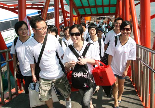 中新網(wǎng)8月26日電 今天是七夕情人節(jié),200多名廈門男女青年組團(tuán),以“小三通”為鵲橋,飄洋過海到金門,參加海峽兩岸七夕牽手會(huì)活動(dòng),尋覓有情人。