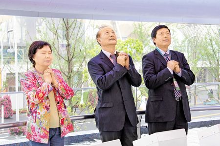 報道說,厲無畏等人在臺灣館天燈水臺下許下“國泰民安”心愿,當(dāng)天燈緩緩升起,厲無畏、夫人鄭秀珠女士不時抬頭仰望,鄭秀珠女士更闔上雙眼虔誠地合十祈福。