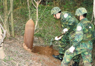 中新網(wǎng)3月30日電 據(jù)臺灣《聯(lián)合報》報道,金門戰(zhàn)地充滿歷史,離島小金門29日發(fā)現(xiàn)一枚巨型未爆彈,重達(dá)130公斤,彈長150公分,未爆彈處理小組勘察,分析可能是二次大戰(zhàn)時期的美制的300磅空用飛機(jī)炸彈,屬于50年前的老舊炸彈。