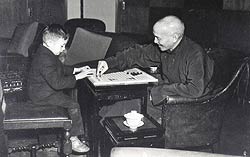 中新網(wǎng)6月3日電 據(jù)臺(tái)灣《旺報(bào)》報(bào)道,1954年,一幅拍攝于蔣介石和二孫孝武在士林官邸下西洋跳棋的照片,獲選國(guó)際攝影展覽人像第一獎(jiǎng)。這不是因?yàn)樗鼇?lái)自臺(tái)灣的“第一家庭”,應(yīng)是其中自然流露的祖孫同樂(lè)親情。