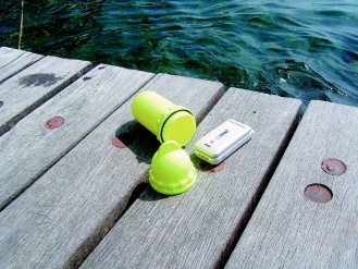 灣海洋公園救生員林垣銓27日中午撈撿海水池里的垃圾雜物,發(fā)現(xiàn)一個膠囊型防水盒;洗去油污后打開,內(nèi)有一支手機,手機沒有浸到水只是沒電。