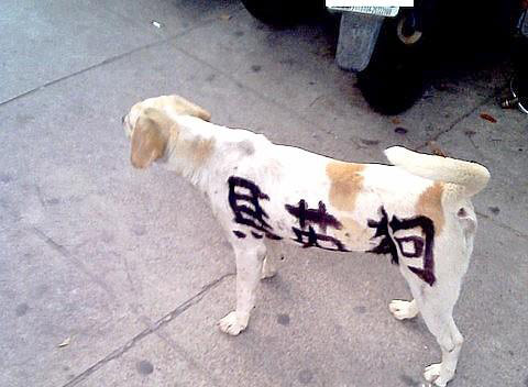 中新網(wǎng)4月14日電 據(jù)TVBS報(bào)道,臺(tái)灣政治戰(zhàn)火延燒到流浪狗身上,臺(tái)中中港轉(zhuǎn)運(yùn)站前幾天出現(xiàn)一只白底黃花的流浪狗,狗身上被人用黑色噴漆寫了“馬英狗”三個(gè)字,民眾感覺有人把對政治的不滿,發(fā)泄在狗身上,實(shí)在很不人道,如果碰到護(hù)馬人士,這只狗啟不是要遭殃。