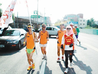 昨天虎尾飛馬慢跑協(xié)會(huì)理事長許大松帶領(lǐng)會(huì)員“陪跑”,一路高喊“珍愛生命”抵達(dá)虎尾分局落腳,許大松表示,已經(jīng)50歲的黃衍齡能夠完成“不可能的任務(wù)”,靠堅(jiān)強(qiáng)的毅力及對(duì)生命熱愛,令人敬佩。