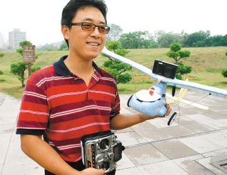 他表示,只要將小型的數(shù)位相機(jī)固定在遙控飛機(jī)機(jī)首,按下連拍模式后讓飛機(jī)升空“霰彈打鳥”,1次上空連拍數(shù)百張下來,至少可以挑到幾張好畫面。
