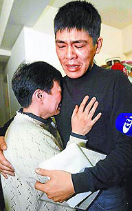 前晚10時37分,走山意外現(xiàn)場下著陣雨,救災(zāi)人員在雨中找到一輛車子的殘骸,謝泓霈看到有如黃色紙團(tuán)般扭曲的鈑金,知道是媽媽的車子,不禁悲從中來,淚水跟著雨水不斷滑落。昨凌晨3時40分,救災(zāi)人員抬出第一具遺體,4時12分再度尋獲一具,他兩度認(rèn)尸,悲傷情緒更加不能控制,他說,“再過兩天就是媽媽生日,我們說好要一起過的!