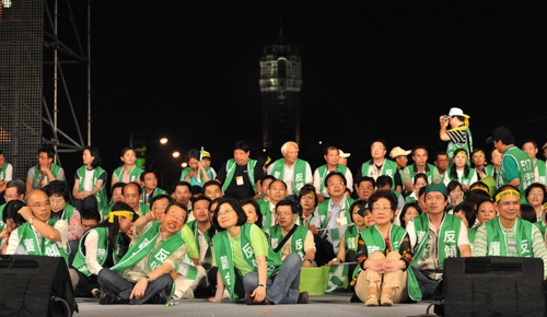 凌晨靜坐民眾逐漸散去,至上午仍在凱道群眾大約剩上千人,主舞臺(tái)區(qū)有民進(jìn)黨主席蔡英文、呂秀蓮、前“行政院長”謝長廷、蘇貞昌等人。