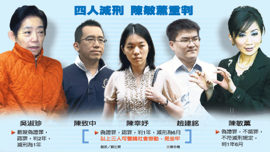 臺灣檢方前查黑中心當年偵辦機要費案,傳喚陳幸妤、陳致中和趙建銘作證,陳幸妤等人證稱提供給吳淑珍的發(fā)票都是因公支出。特偵組追查扁家弊案,認為吳淑珍涉嫌教唆陳幸妤等人偽證,陳幸妤等人也坦承。
