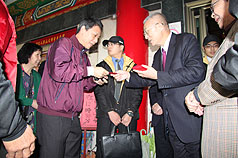 吳敦義在拈香祝禱期間,在大佛風(fēng)景區(qū)內(nèi)的大雄寶殿廣場旁親自種下菩提樹,并發(fā)放888個福袋給前來游玩的民眾。