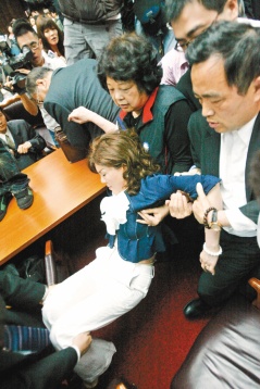 藍綠陣營接下來爆發(fā)四波激烈肢體沖突,多人掛彩,上午9時一到,會議主席趙麗云欲宣布開會,當場爆發(fā)激烈拉扯、相互動手,吳清基在爭吵中完成簡短報告,國民黨團提案進入大體詢答,此時又發(fā)生圍著趙麗云的第二波激烈沖突。