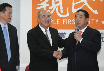 中新網(wǎng)11月19日電 親民黨主席宋楚瑜與國民黨主席吳伯雄今天(19日)共同召開記者會,宣布親民黨“立委”馮定國退出區(qū)域“立委”選舉。但黨籍“立委”沈智慧等仍不愿退選,宋楚瑜表示,明天為“中選會”受理“立委”參選人登記最后一天,國親一定努力整合到最后一刻,不放棄任何機(jī)會。