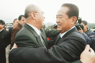 據(jù)臺灣《聯(lián)合報》報道,吳伯雄與宋楚瑜一見面即熱情擁抱,相互致意。媒體追問國親是否有合并計(jì)劃。宋楚瑜表示,國親有共同理念,“將以實(shí)際行動證明給大家看!眳遣蹌t語帶玄機(jī)地說,“請大家拭目以待!
