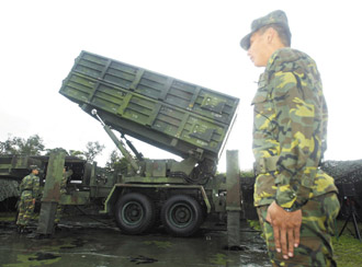 臺(tái)灣軍方昨天開(kāi)放媒體參訪天弓飛彈連,并現(xiàn)場(chǎng)操作飛彈發(fā)射的程序。(臺(tái)灣《聯(lián)合報(bào)》圖;張?zhí)煨郏瘮z影)