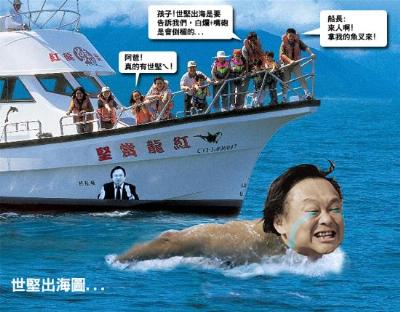 對(duì)于跳海計(jì)劃大陣仗,王世堅(jiān)今天上午也坦承,有好幾百個(gè)人報(bào)名,其中有很多是多年的朋友,也有很多年紀(jì)都很大了,所以當(dāng)初尋找適當(dāng)?shù)臅r(shí)間和地點(diǎn),很是費(fèi)了一番功夫。他今天更證實(shí),的確選在28日,計(jì)劃前往臺(tái)北萬(wàn)里瑪鋉魚港跳海。