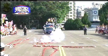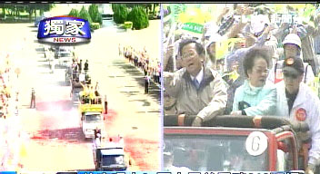陳水扁和呂秀蓮的競(jìng)選車隊(duì)經(jīng)過臺(tái)南市金華街,之所以布置這樣一個(gè)情境,為的就是嚴(yán)防“319槍擊事件”再度上演。