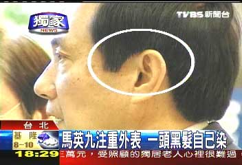 幕僚私下透露,馬英九這一頭黑發(fā)其實(shí)是染的,而且馬英九完全不假他人之手,通通自己來,還因此省下不少上美容院的錢。只是馬英九畢竟不專業(yè),偶爾會被眼尖的人發(fā)現(xiàn),出現(xiàn)一兩撮沒有染到的頭發(fā)。