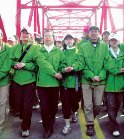 中新網(wǎng)2月18日電 據(jù)臺(tái)灣《中國(guó)時(shí)報(bào)》報(bào)道,選戰(zhàn)進(jìn)入沖刺期。國(guó)民黨2008參選人馬英九將選戰(zhàn)重心南移,在云林、嘉義、臺(tái)南地區(qū)深耕,將于“二二八”紀(jì)念日當(dāng)天,選擇南北追思祈安,先在嘉義“二二八”紀(jì)念公園追思受難者,之后再回臺(tái)北參加紀(jì)念活動(dòng)。民進(jìn)黨則將在臺(tái)北舉行“逆風(fēng)行腳大會(huì)師”。