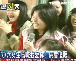報道稱,這名名叫陳琳璦的小女生高喊“我愛你”,連身經(jīng)百戰(zhàn)的馬英九也“凍不住”了,愣在那里,手中的麥克風拿起來又放下,連話都說不出來,這個時候小女生竟然哭了。馬英九忙說:“不要哭,不要哭,我也愛你!