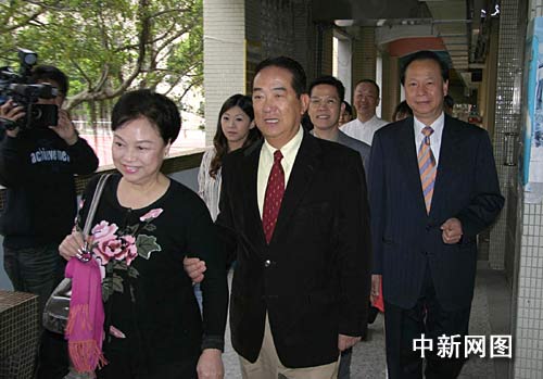 二00八臺(tái)灣地區(qū)領(lǐng)導(dǎo)人選舉投票二十二日上午八點(diǎn)開(kāi)始,親民黨主席宋楚瑜攜夫人陳萬(wàn)水一同前往前往投票所投票。曾嘉 攝