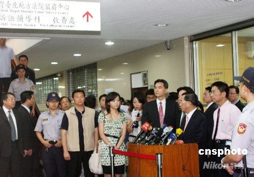 圖為陳水扁在出庭應訊后對媒體表達看法。不久的將來,他將面臨對其貪污的審判。 中新社發(fā) 黃少華 攝