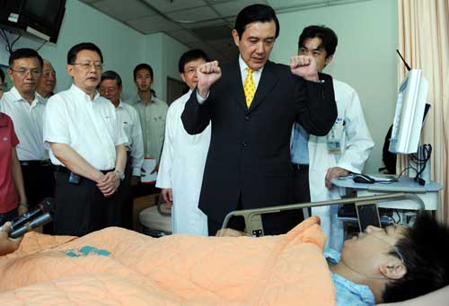 馬英九昨天下午在王卓鈞等人陪同下,到新光醫(yī)院探視臺(tái)北市警局大同分局偵查隊(duì)小隊(duì)長(zhǎng)廖瑞隆等執(zhí)勤受傷員警,并致贈(zèng)慰問金。