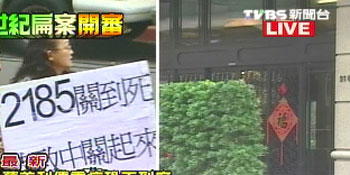 據(jù)臺灣TVBS報(bào)道,扁子陳致中、兒媳黃睿靚一身黑衣,搭乘出租車抵達(dá)法院。許多群眾在場不斷地對他們嗆聲,有婦人高舉“2185(陳水扁在看守所中的編號)關(guān)到死,陳致中關(guān)起來”牌子抗議,警方絲毫不敢大意。