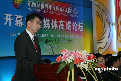 這一屆的論壇是首次在中國西部城市舉行,出席的有來自美國、加拿大、法國等五大洲40多個國家以及香港、澳門、臺灣地區(qū)的400多位傳媒代表。我企盼,也相信,在與國內(nèi)傳媒高層代表共同探討傳承中華文化、攜手共謀發(fā)展等主題的過程里,大家可以取得豐盛的成果,進一步提高世界華文傳媒的國際地位,進一步加強華文傳媒在國際上的影響力。