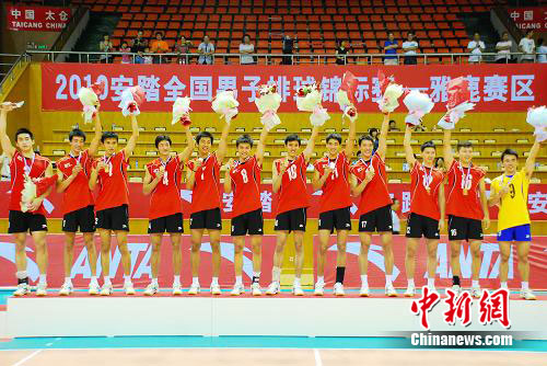 中新網(wǎng)太倉7月19日電(張達(dá))2010年安踏全國男子排球錦標(biāo)賽18日在太倉市體育館完成了最后一日的比賽。在江蘇隊與河南隊的冠亞軍決賽中,江蘇隊在先失兩局的情況下,連扳三局,實現(xiàn)大逆轉(zhuǎn),奪得冠軍。