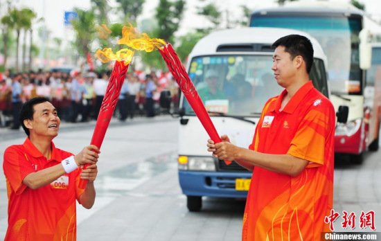 昨日,第16屆廣州亞運(yùn)會火炬?zhèn)鬟f活動在深圳成功舉行。80名來自各行各業(yè)的火炬手參與了全長8公里的傳遞活動,其中不乏王石、譚晶等名人參與。火炬?zhèn)鬟f起點(diǎn)設(shè)在蓮花山頂,終點(diǎn)為蓮花山公園風(fēng)箏廣場。
