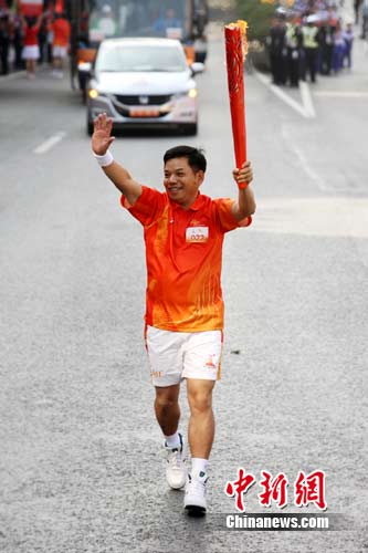 9日上午10時38分,在廣州市解放北路,伴隨群眾的歡呼和掌聲,亞運(yùn)會第22棒火炬手何錦坤順利完成亞運(yùn)火炬?zhèn)鬟f,他激動地說:“在‘119消防日’傳遞火炬,對我而言更具紀(jì)念意義,終生難忘!