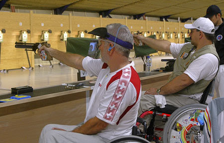 在殘奧會(huì)射擊比賽中,大多數(shù)運(yùn)動(dòng)員坐在輪椅上進(jìn)行比賽。因此,無(wú)論是臥射、立射還是跪射,對(duì)運(yùn)動(dòng)員姿勢(shì)的要求及競(jìng)賽規(guī)則都有特殊的規(guī)定;對(duì)比賽的場(chǎng)地、設(shè)施和器材也有特殊的要求。(來(lái)源: 亞殘運(yùn)會(huì)官方網(wǎng)站)