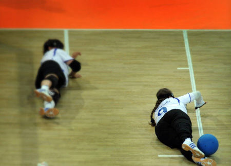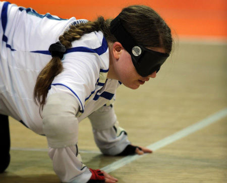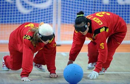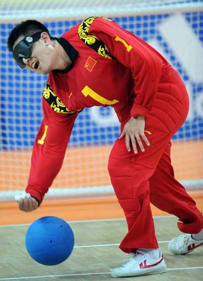 盲人門球運(yùn)動是根據(jù)盲人視力障礙特點(diǎn)而專門設(shè)計的一項集體球類項目,它需要運(yùn)動員根據(jù)觸覺來確定自己在場上的位置、方向;根據(jù)聽覺來判斷球的方向、速度,從而迅速做出反應(yīng)。這項運(yùn)動的形式適合于盲人視覺功能障礙的局限,集安全性、競技性、觀賞性于一體,既突出運(yùn)動員個人技術(shù)又強(qiáng)調(diào)團(tuán)隊配合。有人作了這樣的比喻:“盲人門球運(yùn)動是一項球似籃球,球門似足球,而擲球動作像保齡球的運(yùn)動。” (來源: 亞殘運(yùn)會官方網(wǎng)站)