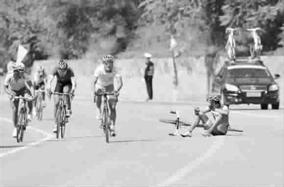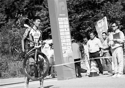 昨天在本溪進行的第十二屆全運會自行車男子公路個人賽中,解放軍隊選手吳佩倫在臨近終點沖刺時不慎摔倒(見上圖),但是他并未因此放棄比賽,而是扛著自行車走過終點線(見上圖),最終以4小時42分14秒的成績位列第26名。吳佩倫的行為,生動體現(xiàn)了永不言棄的體育精神,賽后他說:“我到這里,不是來聽發(fā)令槍的,而是要沖過終點線的!