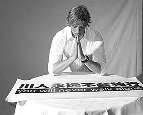 北京時(shí)間5月19日,為了準(zhǔn)備歐洲杯,西班牙國家隊(duì)9號(hào)托雷斯從英國匆匆趕回西班牙。雖然西班牙國家隊(duì)事務(wù)繁多,主帥阿拉貢內(nèi)斯還專門和利物浦前鋒進(jìn)行了兩個(gè)小時(shí)的談話,但是英超本賽季最佳外援、也是英超歷史上最杰出外援之一的托雷斯已經(jīng)從各方面知道了這天是中國的哀悼日。他專門抽出時(shí)間,脫下紅色的國家隊(duì)?wèi)?zhàn)袍,換上白色襯衣,以一名利物浦球員的名義,以西班牙國家隊(duì)球員的名義,與中國人民一同憑吊在四川地震中遇難的生命。