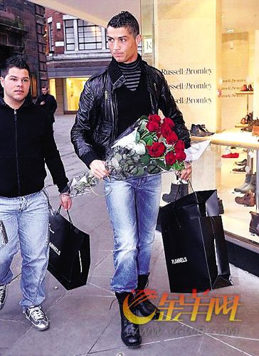 24歲的曼聯(lián)球星當(dāng)天攜一名友人一起出行,他們?cè)诼鼜厮固匾患腋呒?jí)商店花了1萬(wàn)英鎊,買(mǎi)走了幾套休閑服裝。真可謂一擲千金。而當(dāng)天還有C·羅的球迷發(fā)現(xiàn)了他們,興奮的球迷送給了C·羅一束火紅的玫瑰。手持玫瑰的C·羅看上去更加娘娘腔了。