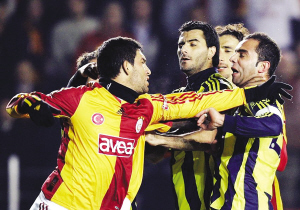 土耳其超級(jí)聯(lián)賽昨晨舉行了一場(chǎng)被稱之“國(guó)家德比”的焦點(diǎn)大戰(zhàn)。最終加拉塔薩雷0:0戰(zhàn)平費(fèi)內(nèi)巴切。比賽結(jié)果雖然平淡,比賽過(guò)程卻異常火爆激烈,比賽最后時(shí)刻雙方球員起了激烈沖突。導(dǎo)火索是加拉塔薩雷隊(duì)的攻擊型中場(chǎng)阿爾達(dá)·圖蘭在比賽的最后一分鐘,與費(fèi)內(nèi)巴切的西班牙國(guó)家前鋒丹尼爾·古伊薩起了摩擦,圖蘭當(dāng)場(chǎng)掌摑古伊薩。雙方球員見(jiàn)狀都失去了理智,最終發(fā)展成為群毆。