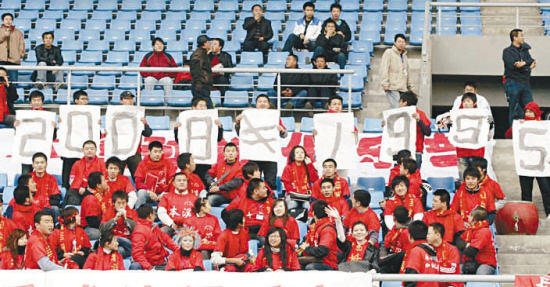 奧運(yùn)后的中超并未如想象中凋敝,相反,在各個城市的看臺上展開了一場場“標(biāo)語大賽”,每一輪聯(lián)賽都是一部眼花繚亂的標(biāo)語大觀。球迷通過寫標(biāo)語找到了新的樂趣,展示智慧與激情,抒發(fā)對中超的想法與感情。中國球迷不再只是喊喊口號唱唱歌,他們用新的娛樂方式引領(lǐng)中超走進(jìn)“新娛樂時代”。