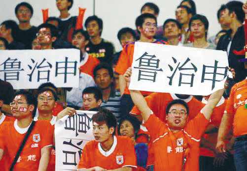 “中超標(biāo)語”更是球迷集體意識的進(jìn)步。他們不再滿足于僅僅作一個看客,不再滿足于傳統(tǒng)的加油助威方式。他們想用更積極主動的手段參與到比賽當(dāng)中,直接觸及球員和教練的心靈深處。博大精深的漢語言文化是最好的工具,球迷的智慧是最好的發(fā)動機(jī),形形色色的中超標(biāo)語再次證明了“高手在民間”。