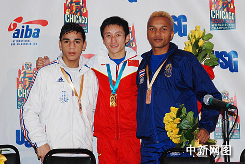 經(jīng)過六場艱苦的比賽,中國明星拳手、上屆中國綿陽世界拳擊錦標(biāo)賽48公斤級冠軍鄒市明成功衛(wèi)冕,在芝加哥世錦賽上第一個(gè)登上了冠軍領(lǐng)獎(jiǎng)臺,由國際拳擊聯(lián)合會主席吳經(jīng)國親自為他掛上了本屆比賽的第一枚金牌。