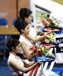 不少禮儀小姐通過“好運北京”奧運測試賽進行了實戰(zhàn)演練。參加曲棍球比賽頒獎的劉暢文告訴記者:“我端的托盤里裝著18塊曲棍球比賽的金牌和1個獎杯,估計至少有10公斤重。一開始我的手都是抖的,我當時特別害怕手抖得太厲害會使獎牌掉下來,不過我最終還是堅持下來了!”