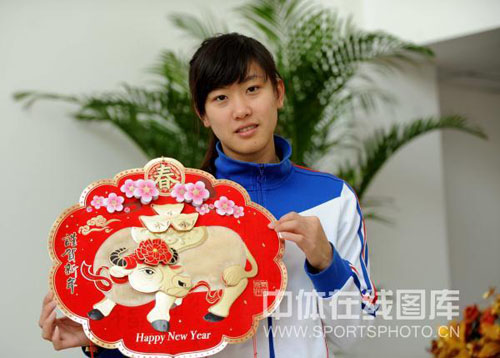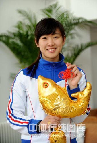 2009年1月7日,在新年即將來(lái)臨之際,中國(guó)女子佩劍隊(duì)隊(duì)員譚雪在北京拍攝新年照,向全國(guó)人民恭賀新年。