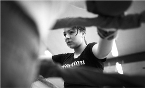謝莉的19歲生日還差兩周,她的對手26歲,報名體重只比她重2公斤,看起來卻遠(yuǎn)遠(yuǎn)比謝莉壯得多也高得多;艨丝吹剿弊由虾褪直凵线有文身,好像在監(jiān)獄待過。和電影里伊斯特伍德飾演的教練一樣,霍克信奉的第一信條也是“保護(hù)自己永遠(yuǎn)是第一位的”,于是他找到了拳賽組織者。