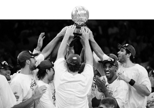 五彩紙帶從斯臺普斯的屋頂飄下,狂歡聲此起彼伏,閃光燈閃爍不停,科比與鄧肯輕輕相擁,科比帶著勝者特有的微笑,石佛的臉上讀不出任何表情,只有滿眼的失落。一個人能不能拯救球隊?湖人可以、馬刺卻不能。西部冠軍獎杯被高高舉起,不同的是,主角變了,100比92,湖人總比分4比1淘汰馬刺,時隔4年之后重返總決賽。留給馬刺的是依舊無法衛(wèi)冕的宿命。