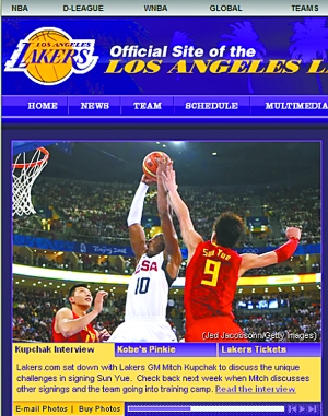 昨天,湖人官網(wǎng)頭條位置刊登了對(duì)俱樂(lè)部總經(jīng)理庫(kù)普切克的采訪,談話的唯一內(nèi)容就是孫悅。庫(kù)普切克披露,為了得到孫悅,他們?nèi)掏锤類(lèi)?ài),放棄了小加索爾。為了更深入地了解孫悅,庫(kù)普切克日前還曾專門(mén)咨詢過(guò)科比。